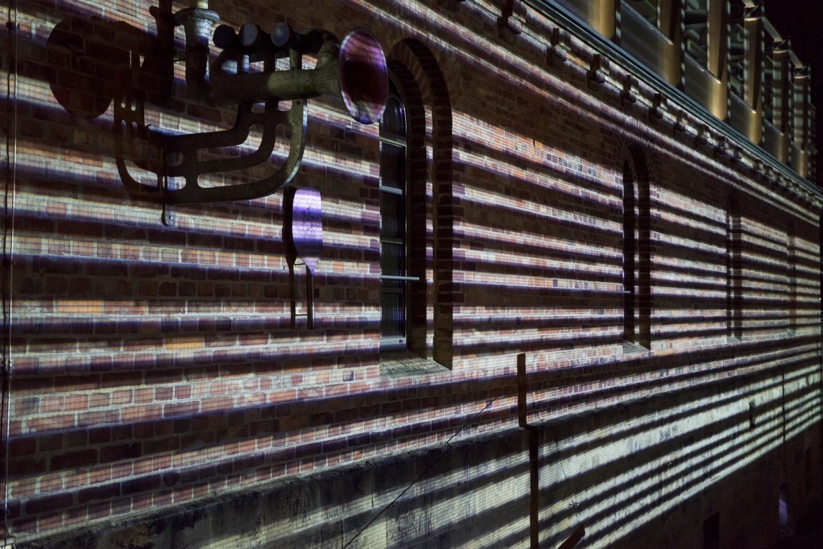 Octavian Mariutiu translates several historical dates out of Hildesheim’s history into binary barcode. In the projection, the semiotic system merges with the architecture of the Bischofsmühle (Bishop’s Mill).