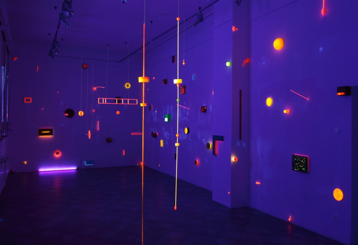 Marek Radke transposes the tradition of abstract art from cubism and color-field painting to tangible painting into three-dimensional sculptures. In his work, he orchestrates the interplay of abstract, geometrical shapes, fluorescent color and space.